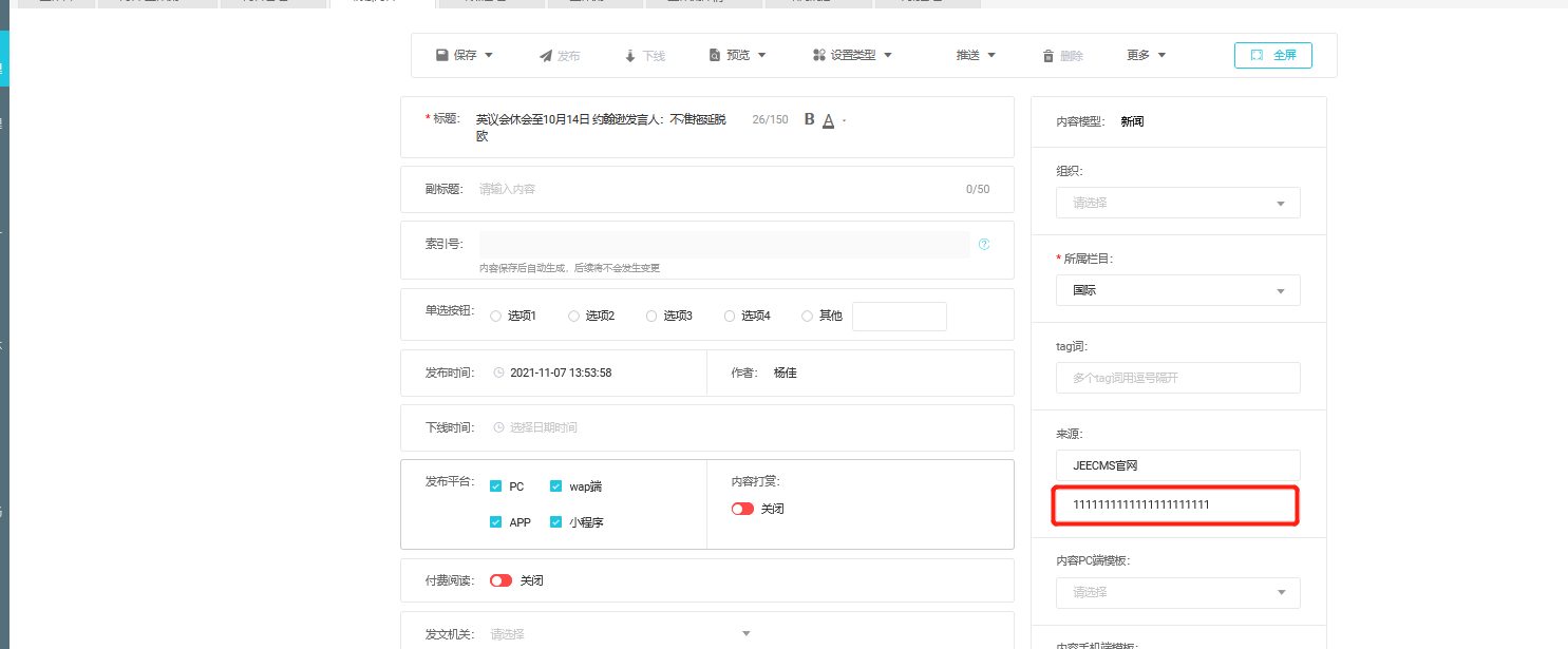 主题 : 新增稿件添加来源数据,发现其他稿件也同步改了