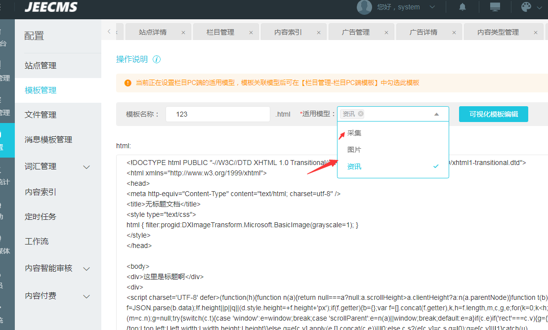 建立子站点,模板文件已建立,模板方案和首页模板都正常显示,栏目模型模板和内容模型模板下拉栏为空。(已创建channel和content文件夹以及文件)!