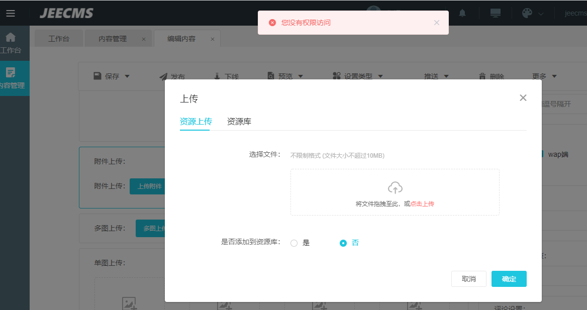 主题 : 创建新账号后上传附件时提示没有访问权限