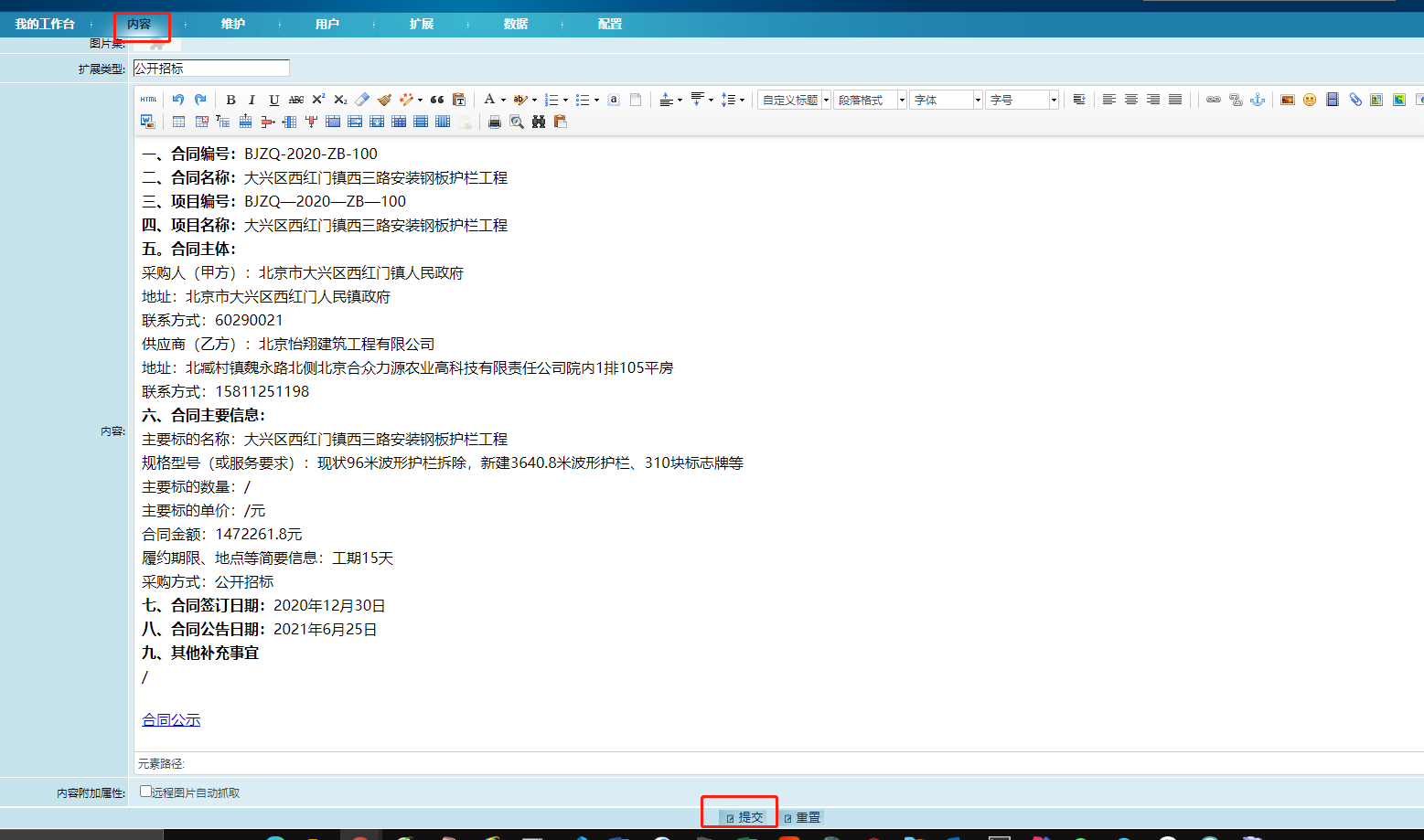 不知道是什么版本,后台内容提交的功能