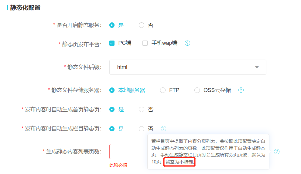 1,生成静态内容列表书注释中,留空不显示 这个是必填项,注释中有误