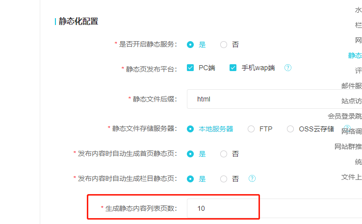 2、在静态页设置里把 发布内容时自动生成首页静态页:发布内容时自动生成栏目静态页:设置为关闭 |