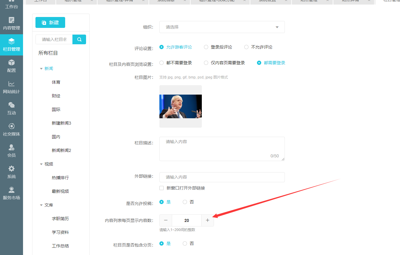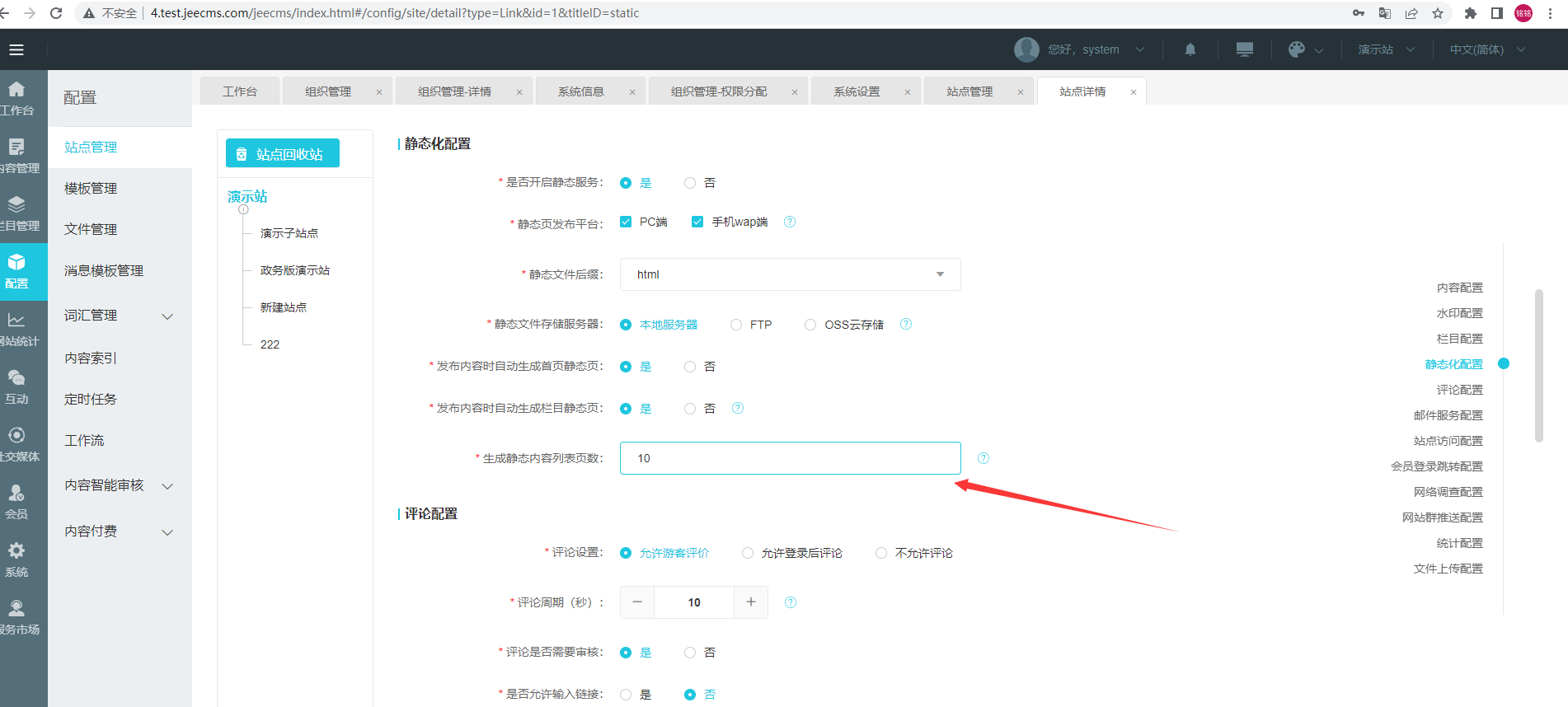 第一张图,我设置的是10,第二种图,栏目管理,内容列表页我设置的是6,我一共有有2000多条数据,实际的列表页数是300多页
