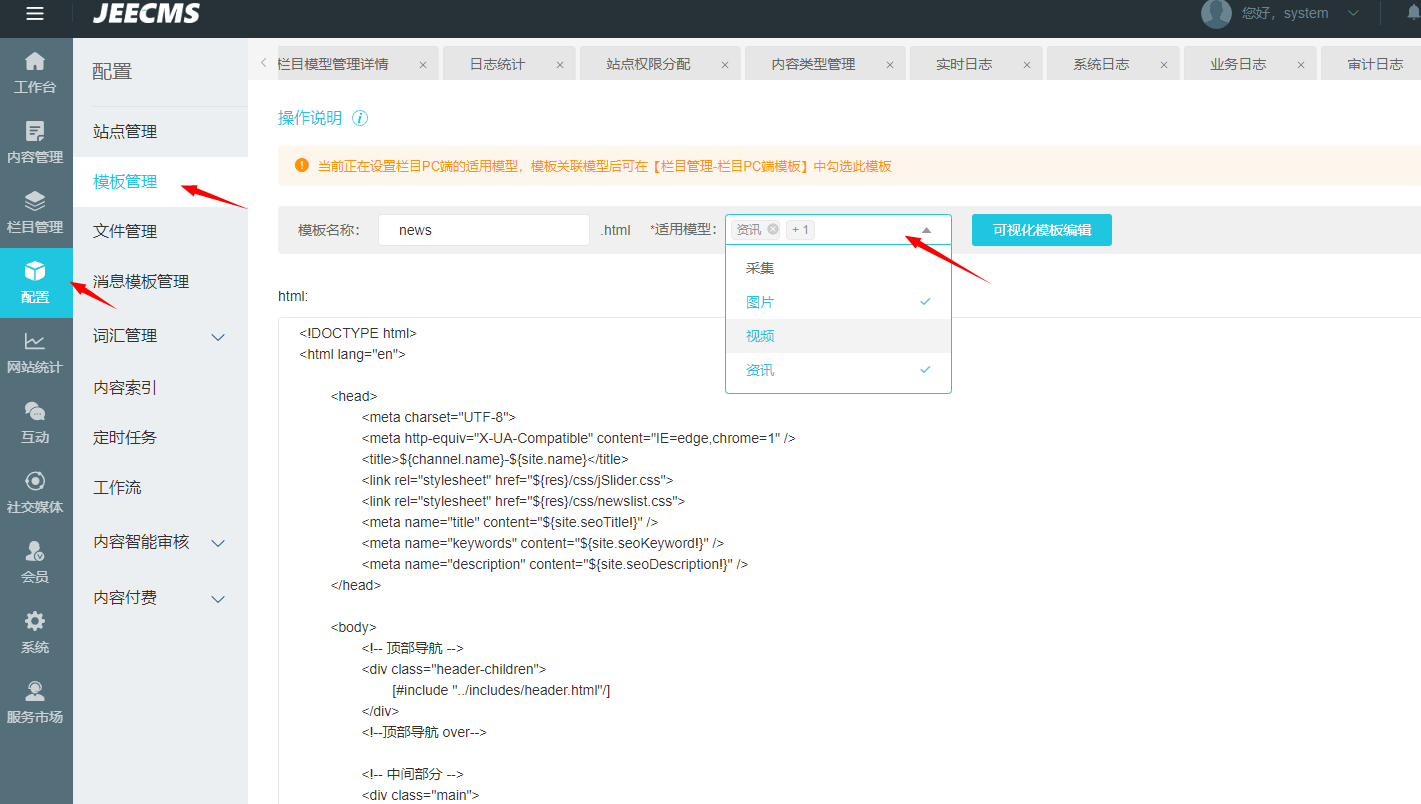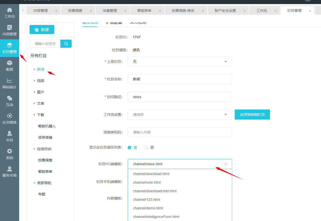 请问自己新写的一个html模板,新建栏目怎么与之匹配呢