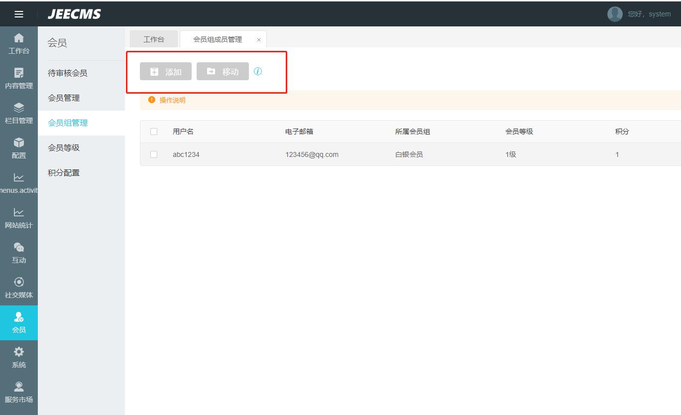 主题 : 会员组成员管理添加和移动按钮没有权限操作?