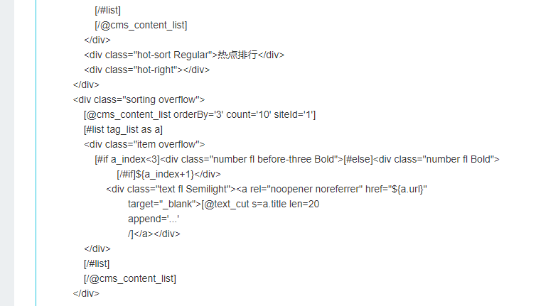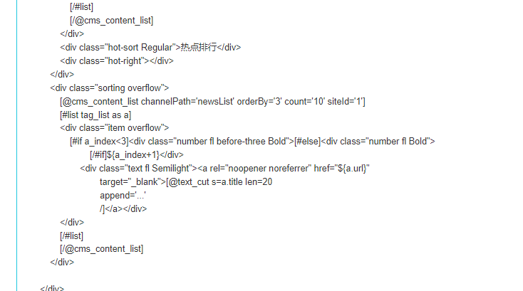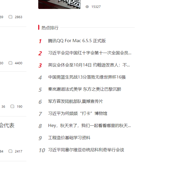 新闻列表模板下的 热点排行   这是我现在的效果  和代码