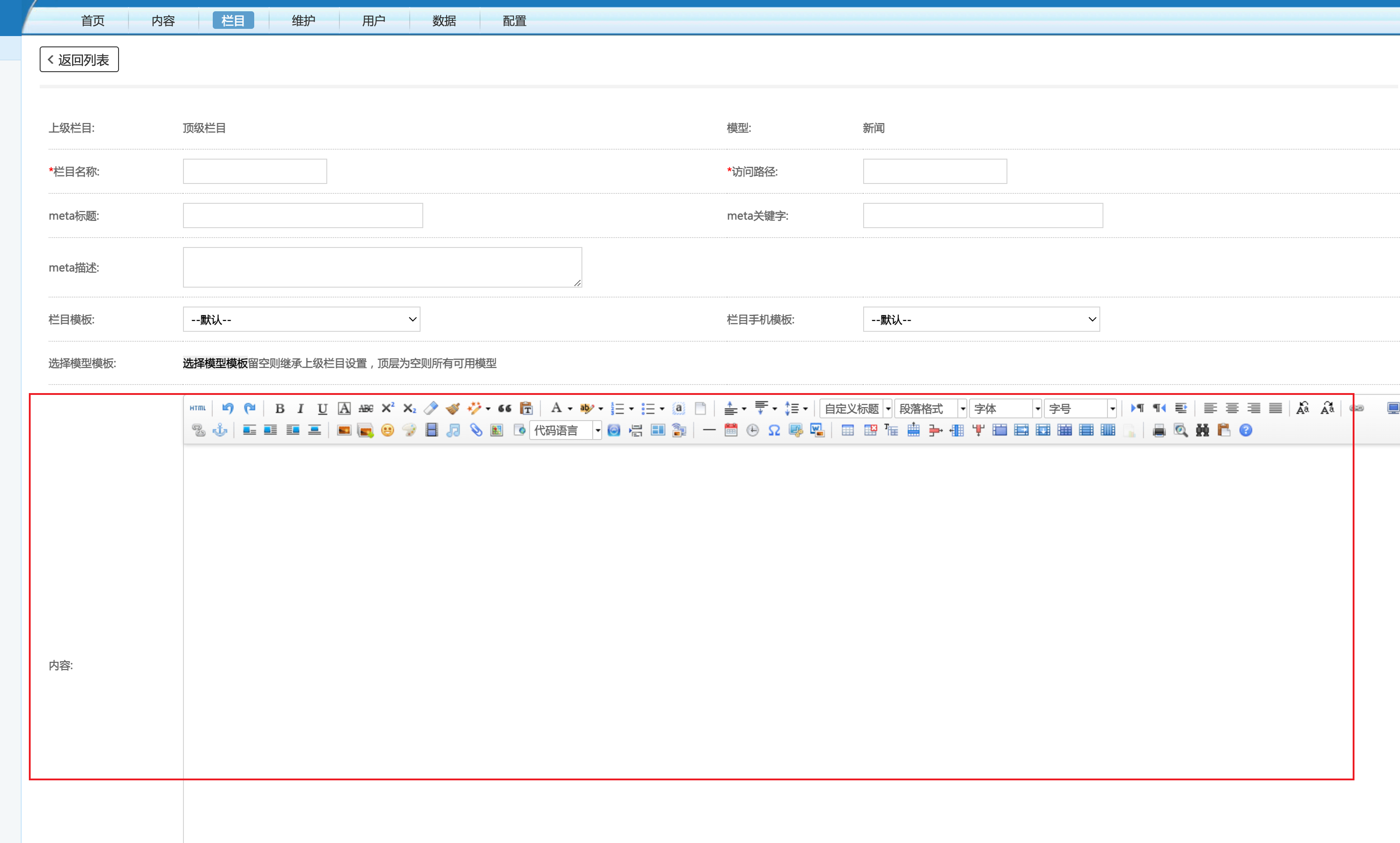 jeecms V8 版本可以在添加栏目时维护栏目内容,请问X1版本应该如何操作?