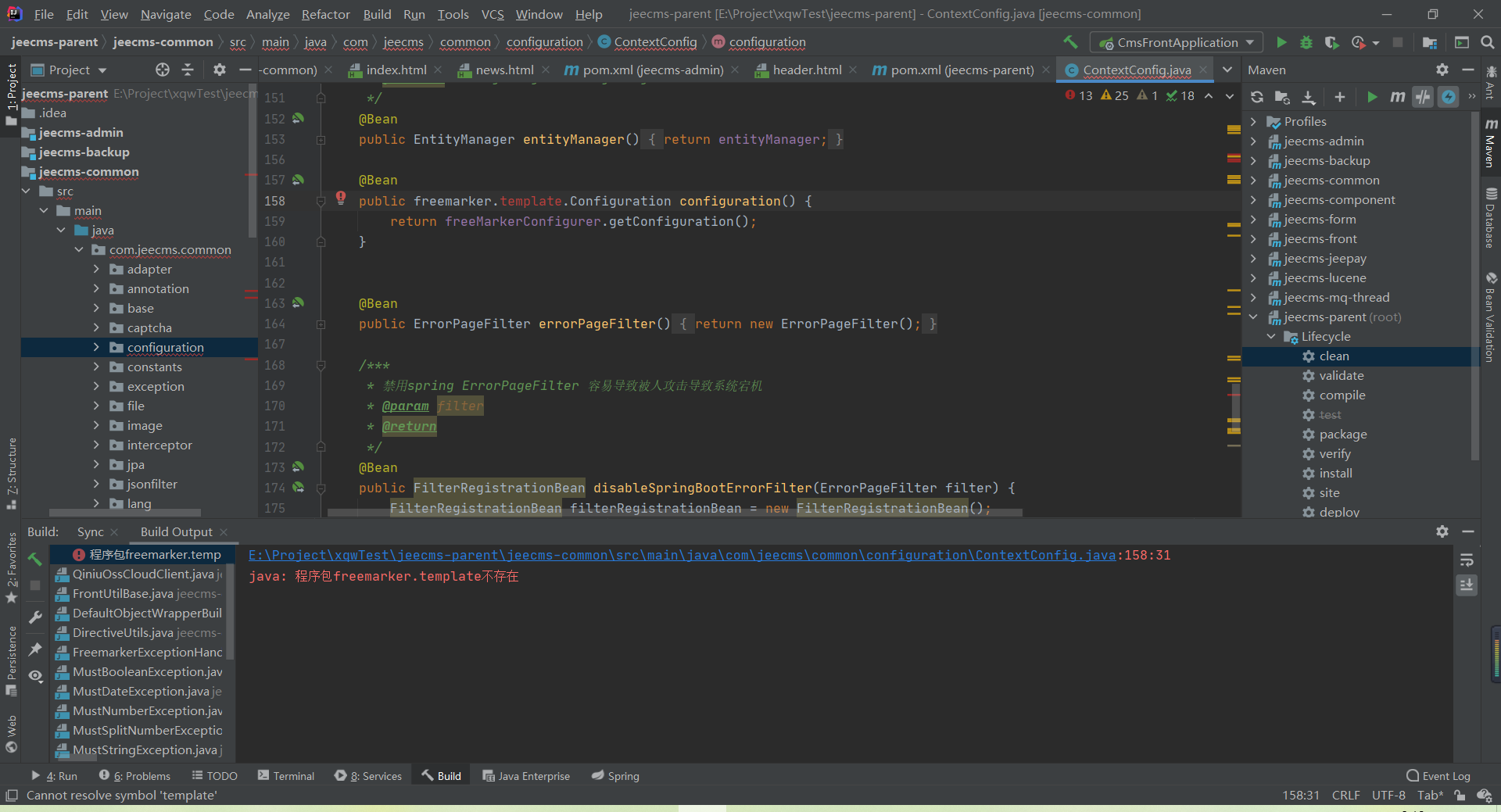 这是什么版本? 这是没识别到freemarkjar包,看看common工程是不是读取本地的freemarkerjar