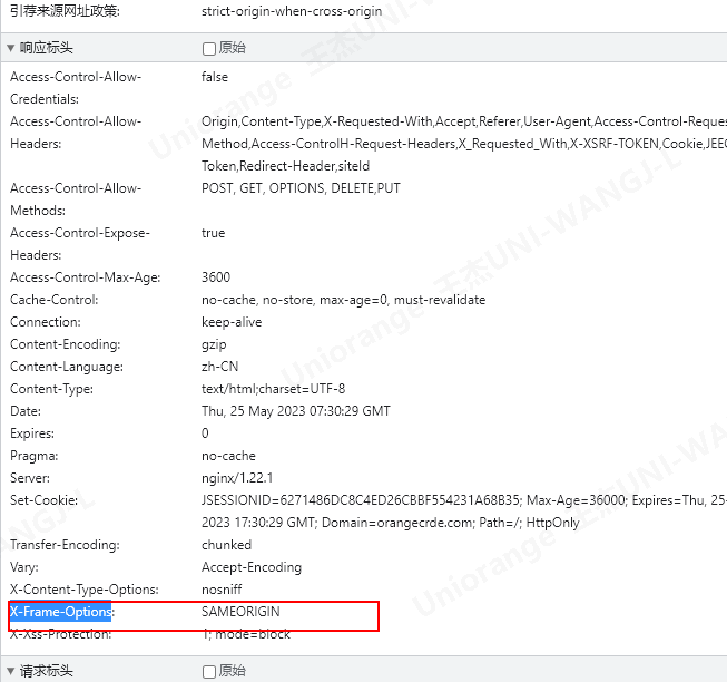 非同源的网站想用iframe的方式嵌套CMS的页面被拒绝,看到了请求头的配置如图,怎么修改这个属性呢