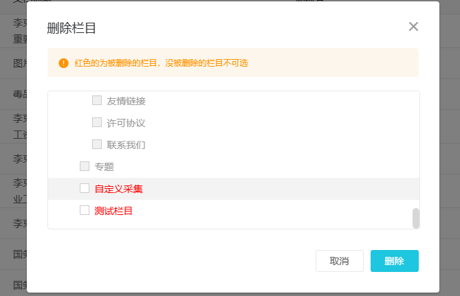 删除栏目后在回收站没有彻底删除选项,并且数据库中留存被删除栏目信息