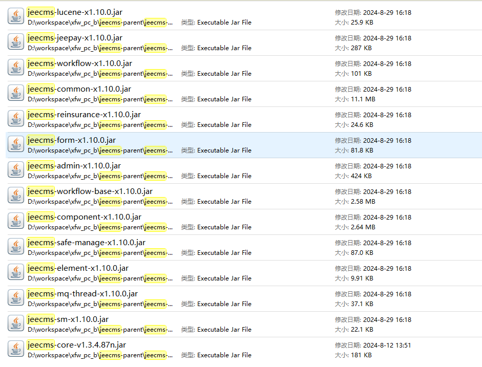 您这个项目里面的WEB-INF lib目录下 的jar jeecms-开始的名称的jar截图下