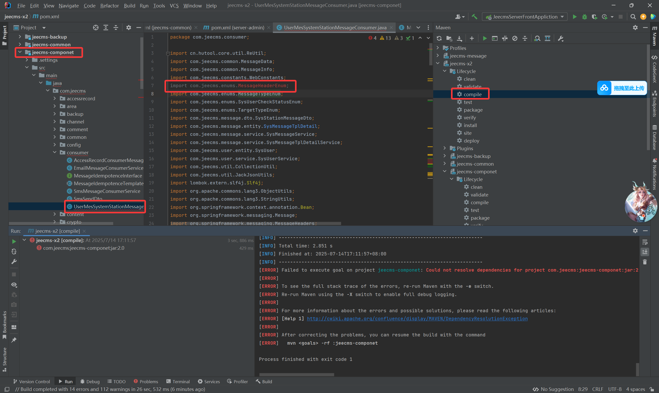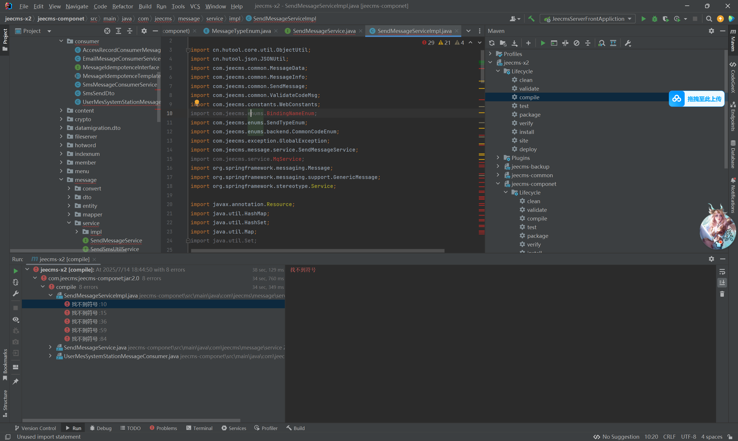 jeecms-message-api 这个类在这个工程里面,感觉还是这个工程没加载到