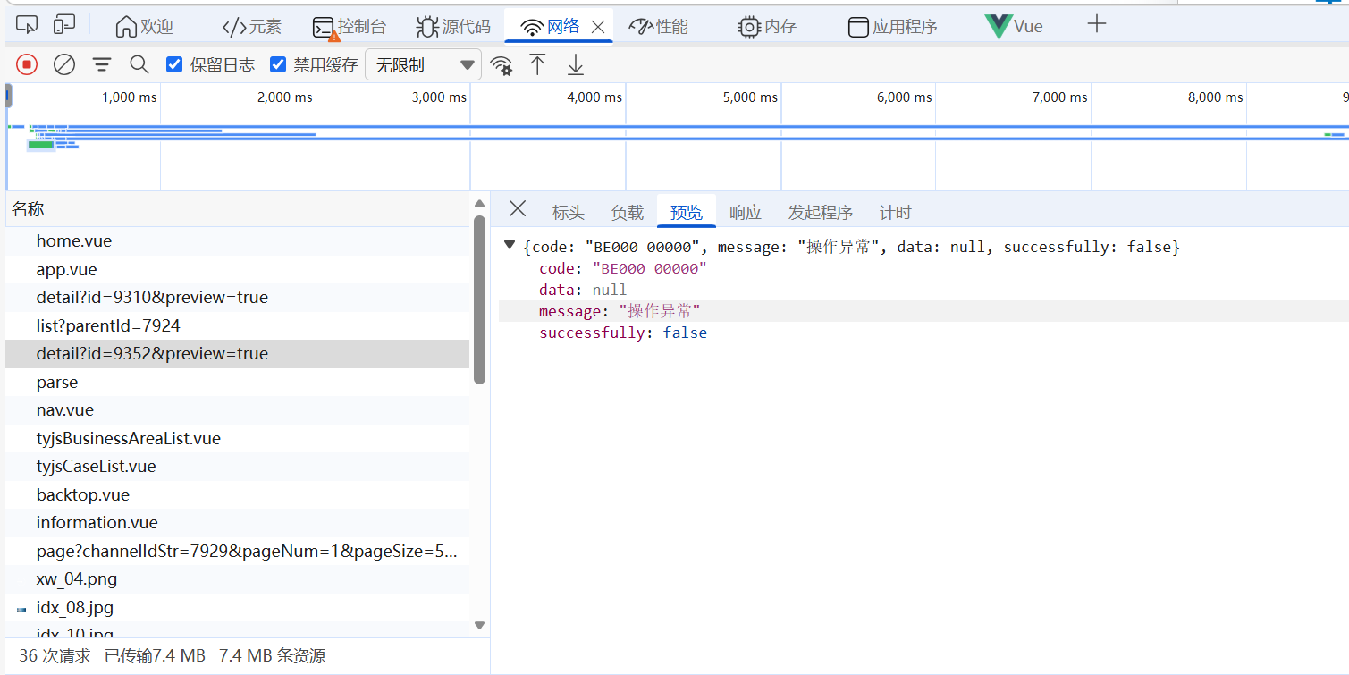 页面内容不显示,接口返回操作异常,一年前也出现过这个情况,没有动过后端程序,但是好像过一阵又好了,客户估计也好久没用了该网站了,突然问我网站页面没有内容了