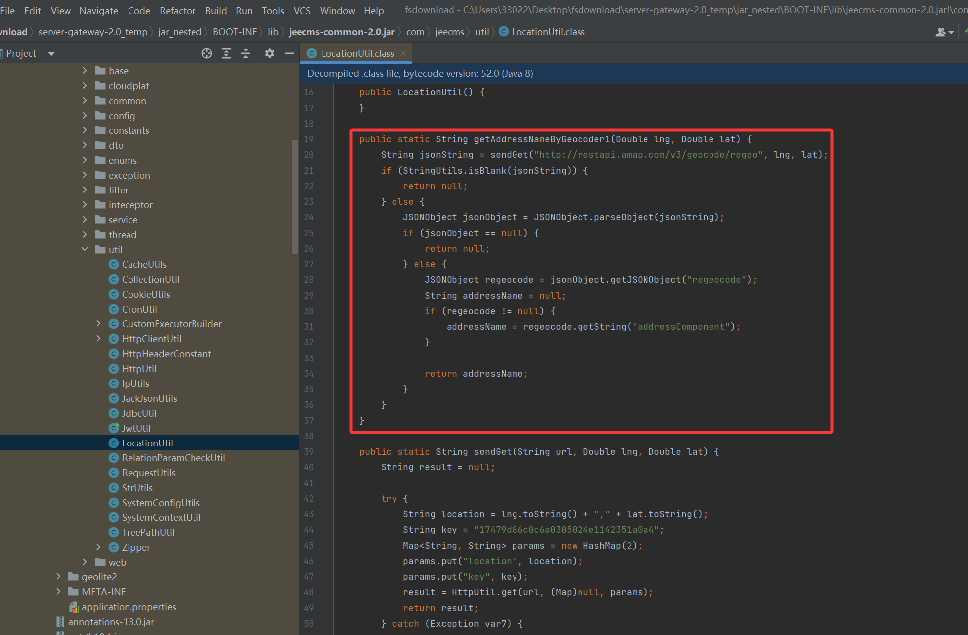 我将涉及到getAddressNameByGeocoder1方法的三个jar包(server-gateway、server-admin、server-front)修改后,重新打包发布,还是报操作异常的错误