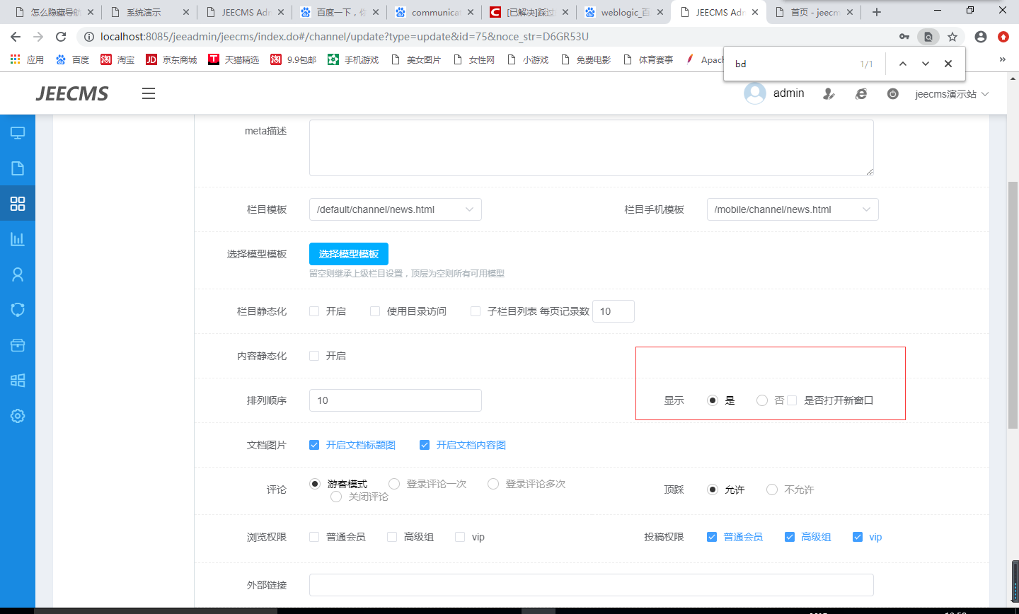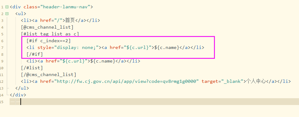 jeecms v9.3版本,我要把导航栏的一个栏目隐藏了,这样写没反应,帮我看看,哪写的不对