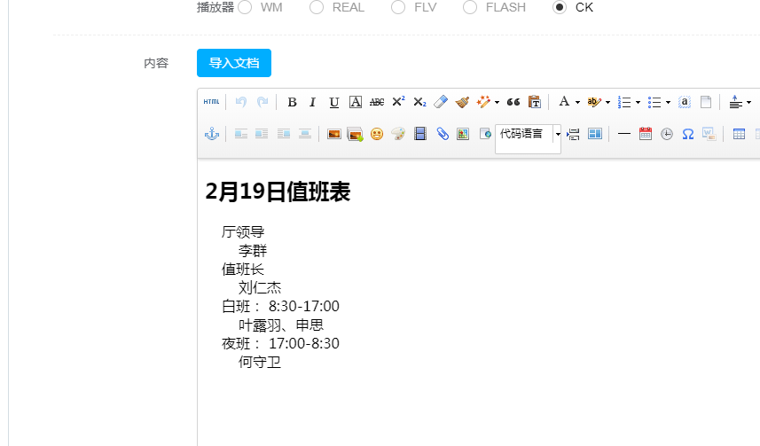 我还有一个问题 也是关于这个值班信息的 我现在做完的效果就是每天都得改才能显示当日值班信息 我实在栏目里直接写的值班信息 然后用[@cms_channel id=171] 直接取得 ${tag_bean.txt!} [/@cms_channel] 那如果我在一个channel里建很多的content 每一个content里都是一天的值班信息 我想每天只显示一个content能实现不 |