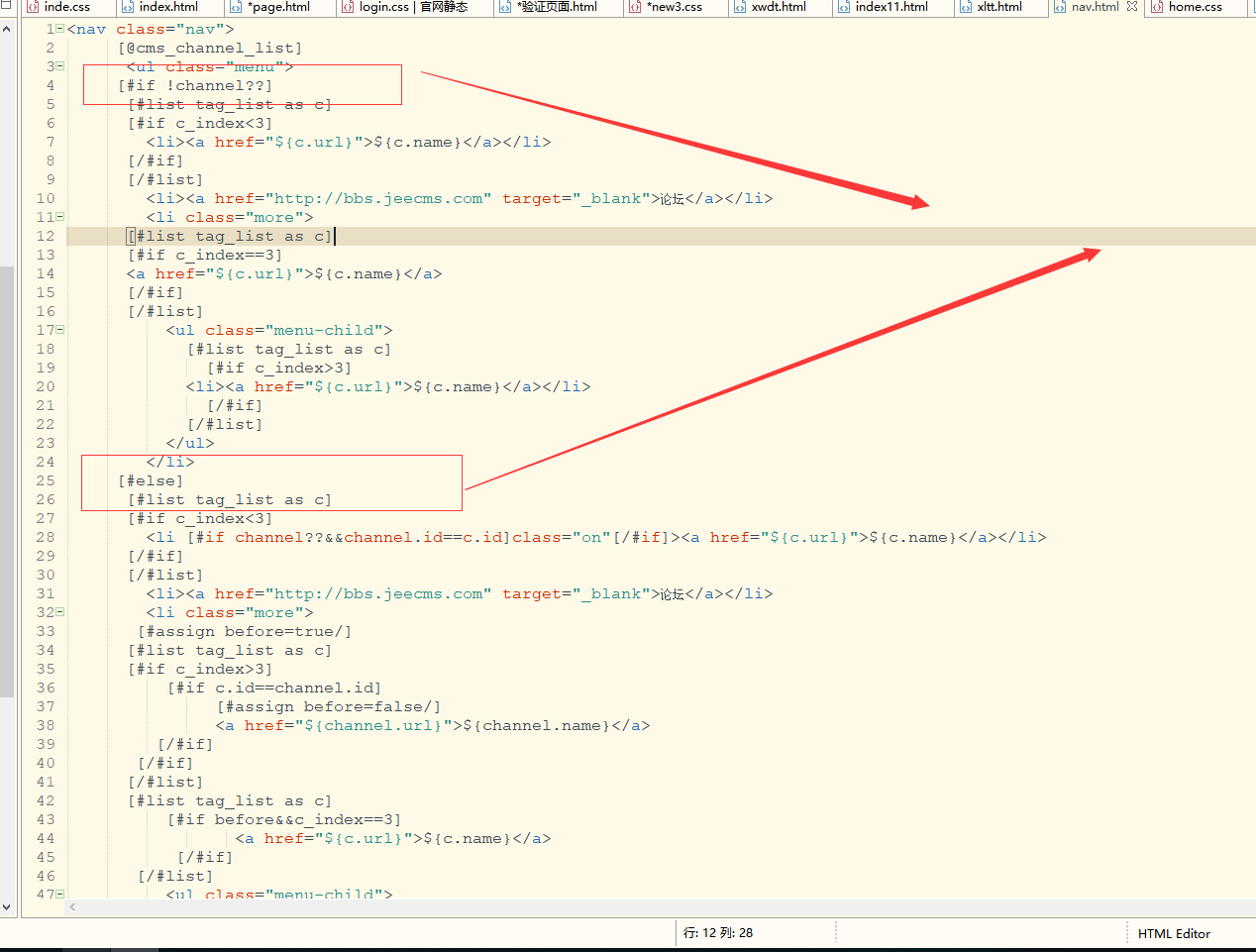 判断是否有设置栏目模板  有就显示上面的if  没有就走else