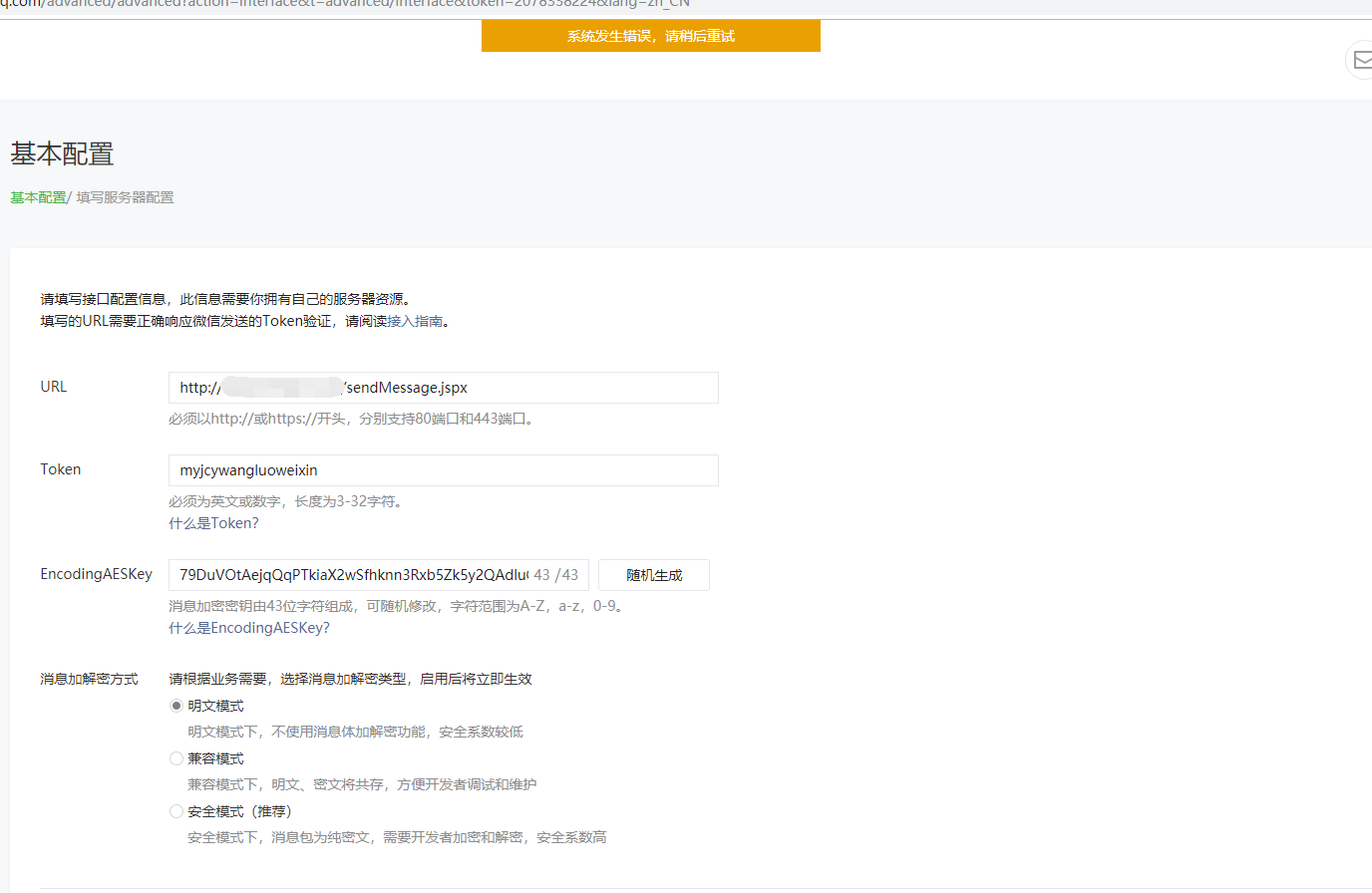 回复第9楼  我在微信公众号修改服务器的配置 点击提交一直报系统发生了错误