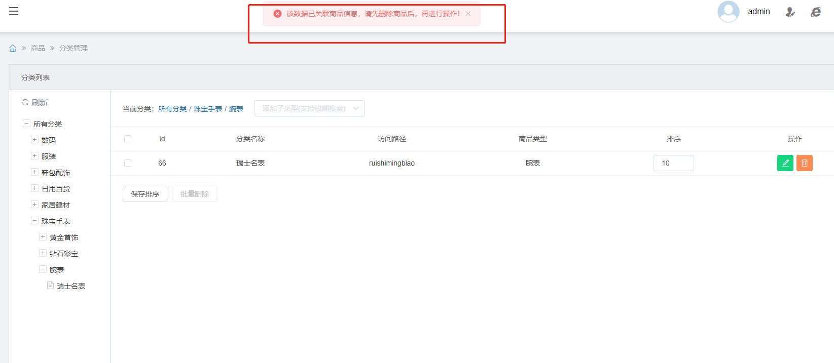 回复第10楼:我这边删除商品,再删除栏目,也会报错,实际上数据库没有删除商品,只改了状态status为0,栏目根本删除不了