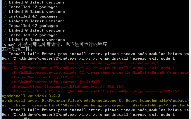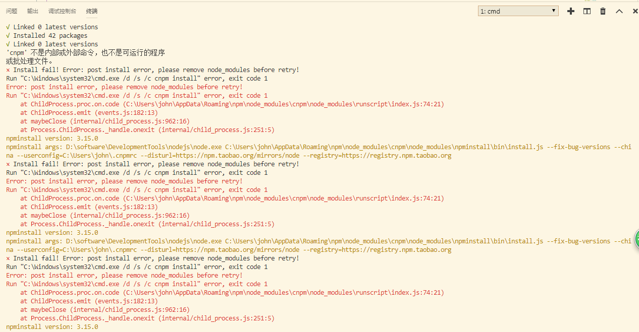 你的文档,我有看过。 这些环境,我机器之前开发REACT有装好的,就配置了下环境信息。 你看我的环境那个图片,node,npm,cnpm版本信息都是正常的。 |