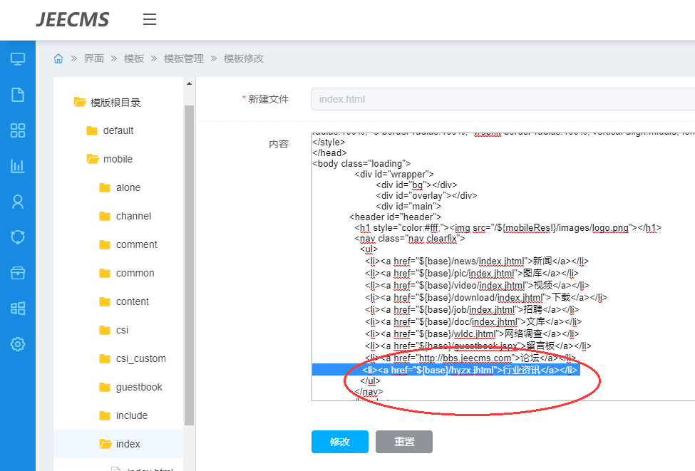 您要修改的话只需要去修改模板就可以了 在后台找到手机端的模板 然后找到index文件夹下的index.html