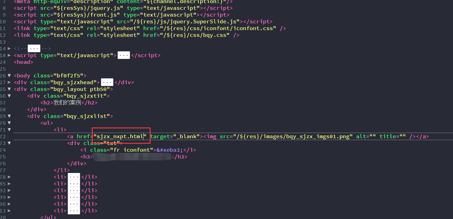 我发的刚才的那个截图。现在需要就是把那个a标签替换掉。然后我的二级页面的模板是在哪里/ |