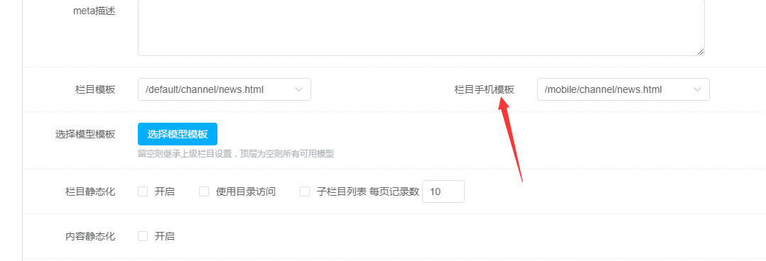 手机版的栏目模板怎么设置,只看到内容模板有手机设置?
