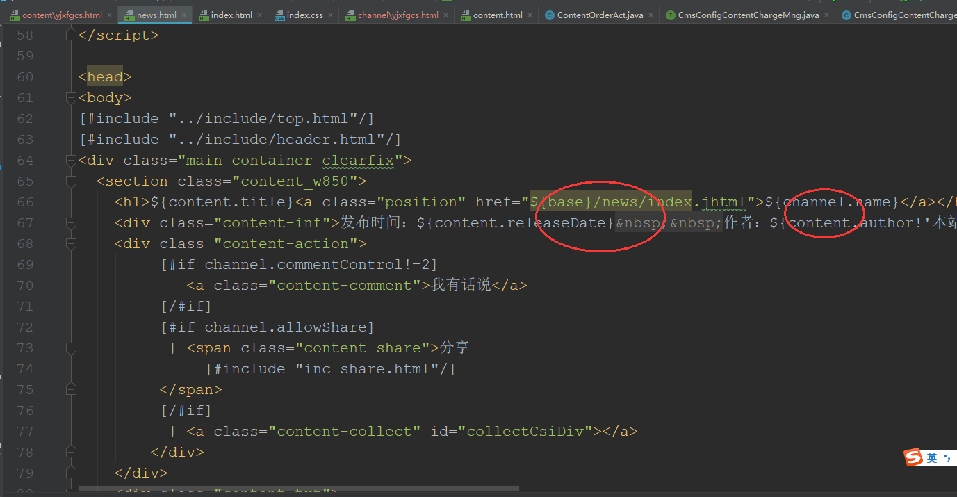 您好 首先${base}这个是获取的您的网站域名 channel 和content这2个标签您在模板哪里就可以看到分别是用来获取栏目和内容的标签