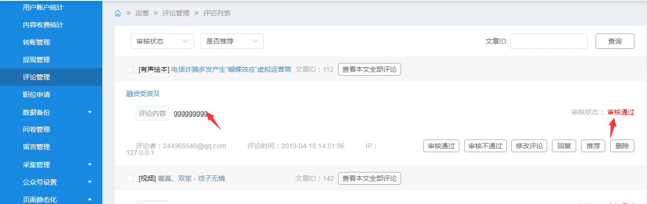 这个就是点击回复的,后台也审核通过了
