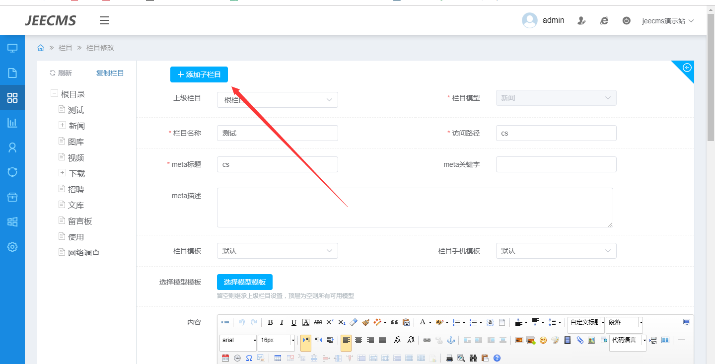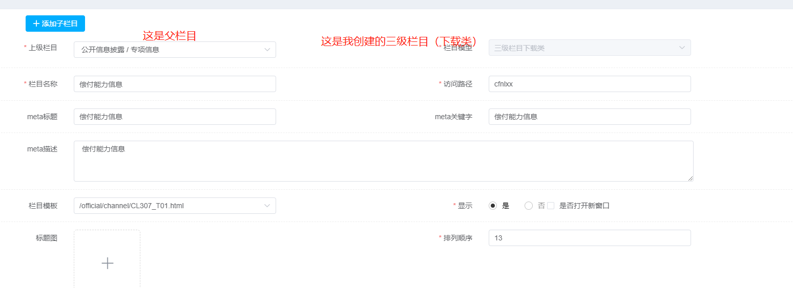 您好 这个我就不太清楚您的栏目等级关系了 您如果是想要建3级栏目 那么就需要在您这个三级栏目的上级也就是2及栏目下创建子级栏目 其他的也是同理