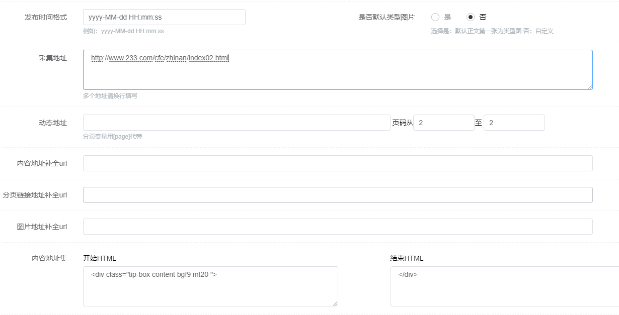 您好 采集这个只能由您那般配置 这个是需要根据您采集的网站来配置的 您如果需要测试功能的话 您可以去看下我们演示站的哪个采集 按哪个采集试下 只要新浪的布局没改 应该是可以的