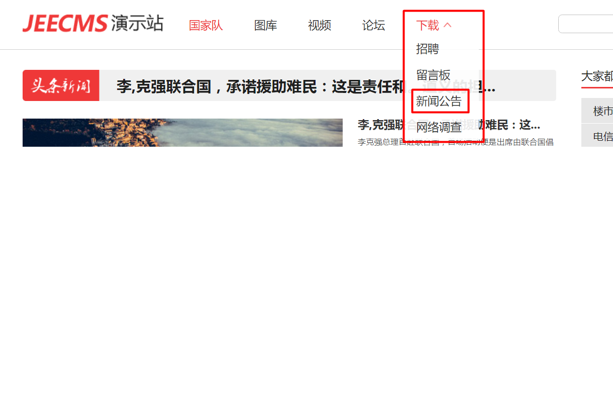 您好 我这边可以给您一个栏目下拉联动的案例 您可以根据这个案例来开发您的导航栏