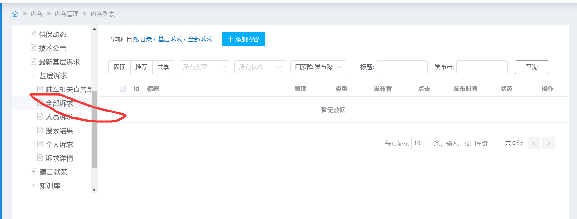 内容列表里面没有内容
