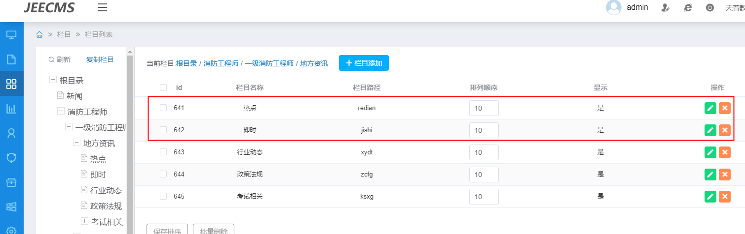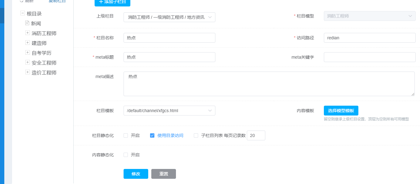 ![]() ![]() 就是我想让热点和即时这两个栏目的详情界面的模板用一个,但是现在设置都是一样的,但是前段展示的不是一个模板,怎么弄得? |