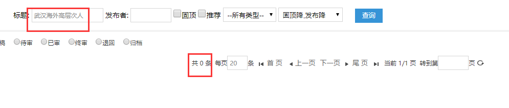 不是,我后台不搜索,看的到内容列表中标题为2222的就有2个,然后我用前台的搜索功能发现只能搜到一个,就如图一和图二所示,后台的搜索功能好像要和有问题,我到数据库中找到一条content信息,然后利用后台的搜索功能,发现搜索不到这条数据。如图3和图4所示。
