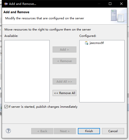 你好 我按照之前说的 先把项目删除了 在tomcat server存在的情况下重新导入了项目 但是还是不能把项目导入到tomcat里 点击add or remove还是说找不到资源 |