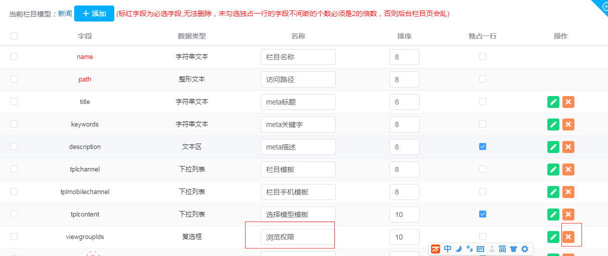 看了,然后模型管理中把新闻栏目模型下的权限管理删除了,不是这样的操作吗?