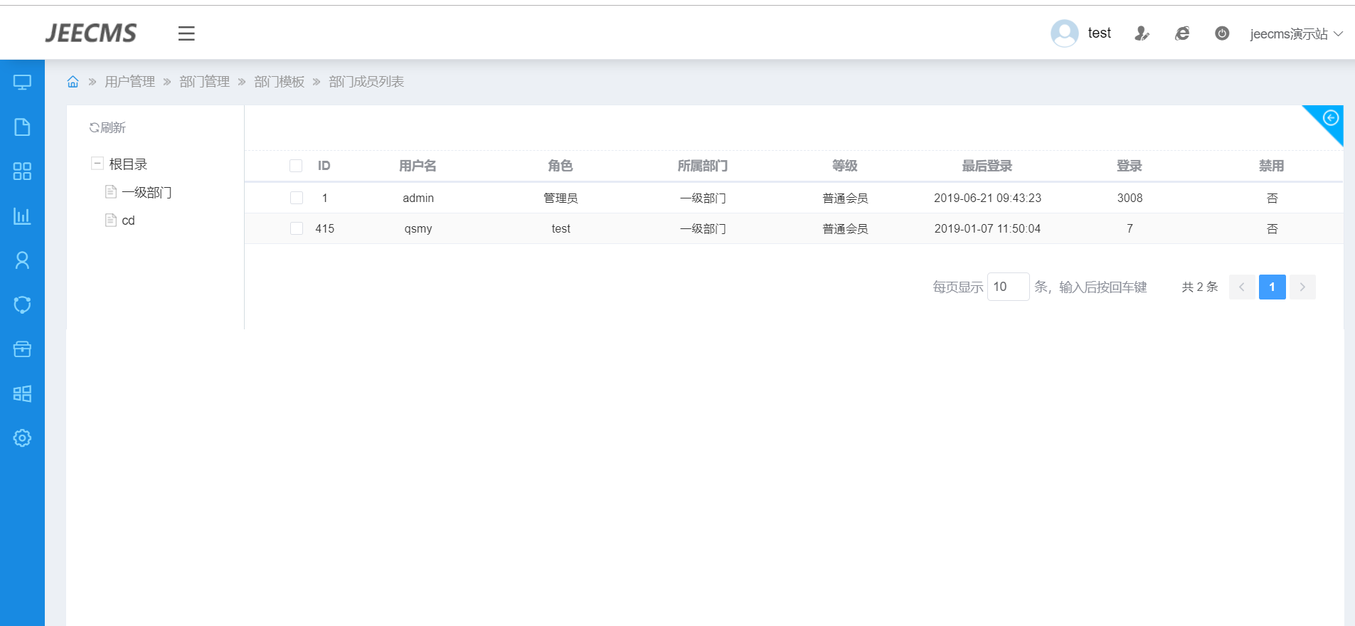 您好   只有管理员可以使用部门   会员是使用不了部门的   会员就是前台的注册用户  管理员是后台的站点管理用户