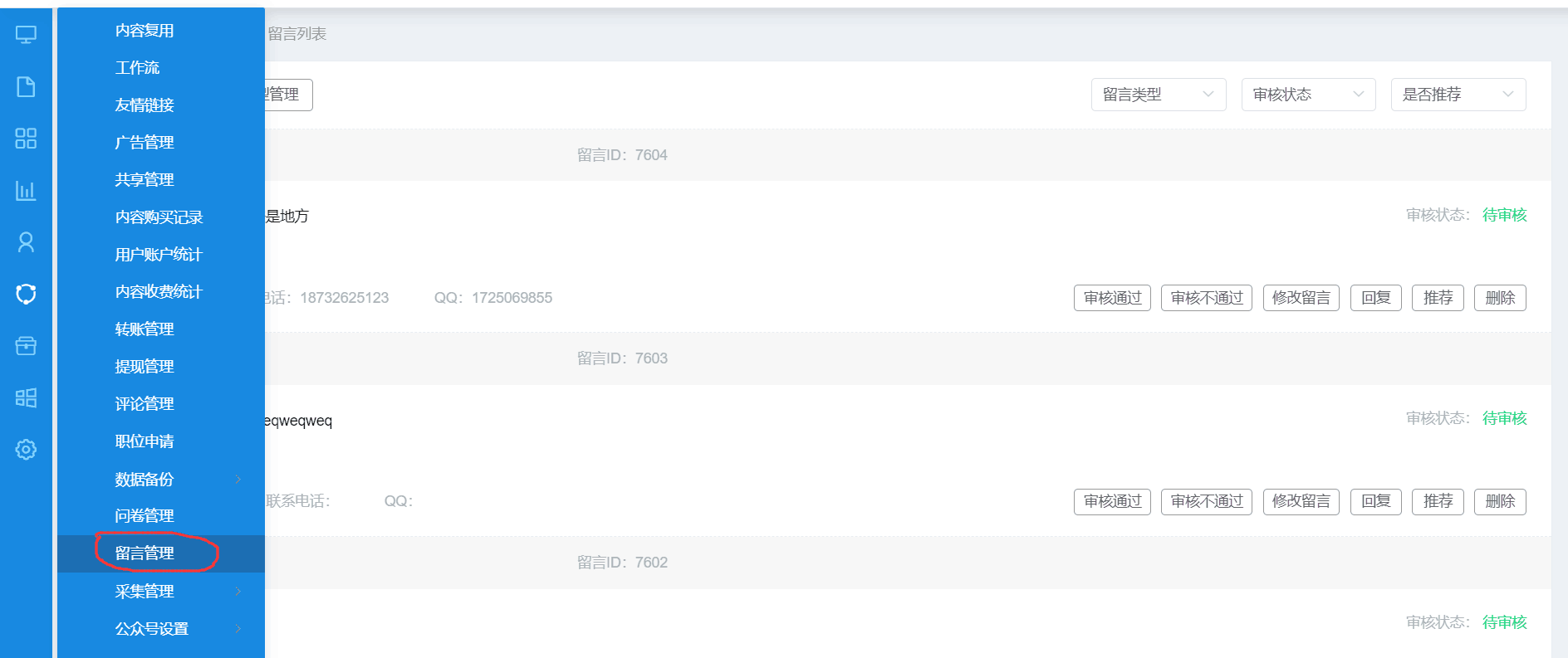 您好 我想再问一下就是我们的留言功能能不能复用,我前台页面写过一个跟留言相似的功能了,然后还想再另一个页面写一个跟留言相似的功能,然后后台再建一个留言管理审批的栏目