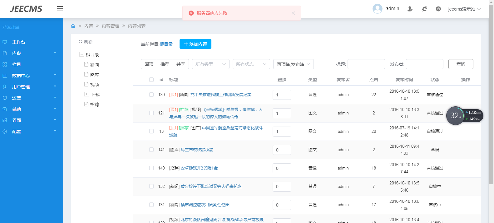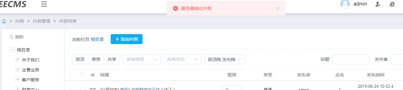 是的  先不说复制功能 我点击栏目内容  都显示 服务器响应失败  是哪里没有配置号码 有时候修改栏目也是报错  时好时坏