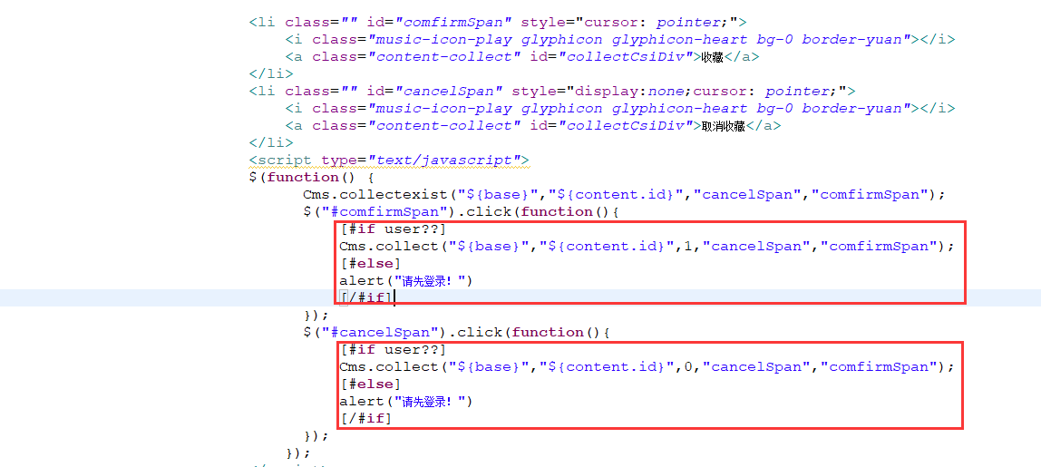 点击按钮的时候在模板里加了个判断,但是没登录的时候是正常的,如果是登录状态,点击收藏会弹两个收藏成功