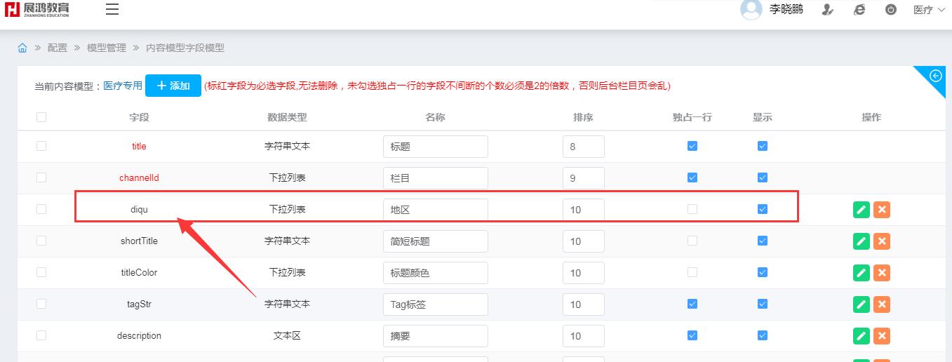 内容模型 新增加的字段 后台添加内容时不显示新字段