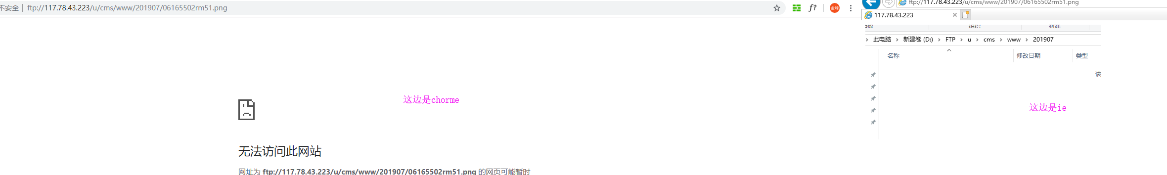 第一是没有文件,第二,富文本框里的路径是正确的(也没有文件),类型图那里是重复路径。第三,谷歌的不能显示ftp文件,但是IE的可以 |