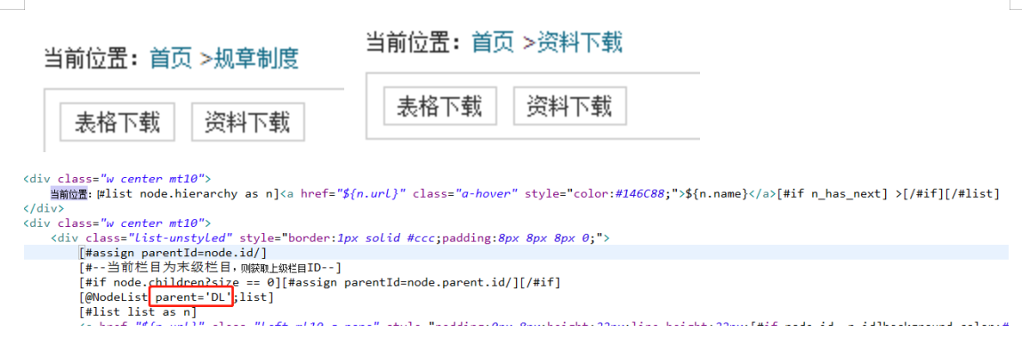 规章制度和资料下载都是一级菜单,表格下载和旁边的资料下载是上面资料下载下的二级菜单,想问一下,parent后面怎么写可以点规章制度的时候显示规章制度的二级菜单,点击资料下载的时候显示资料下载的二级菜单