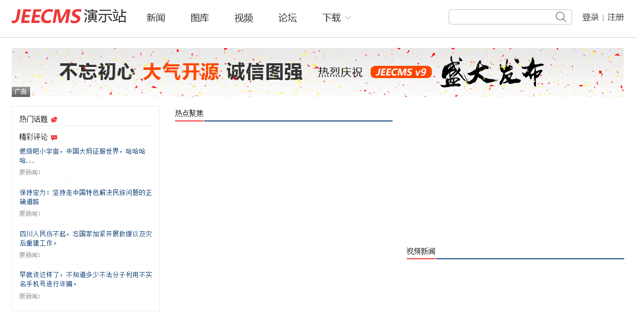 主题 : JEECMSv9.3版源码包下载安装后没有新闻模块丢失