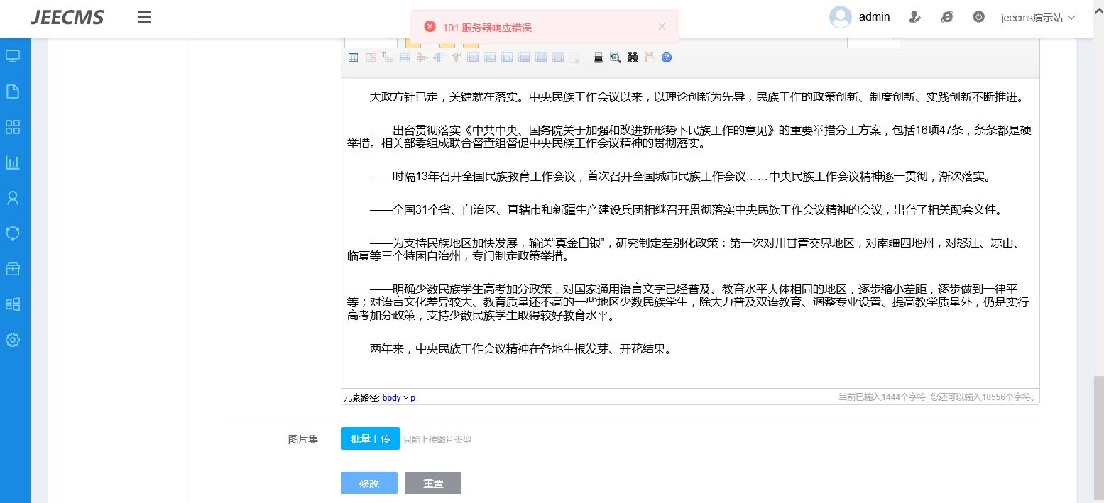 而且后台新闻模块也无法编辑,编辑后台原有的新闻,保存就显示如下: