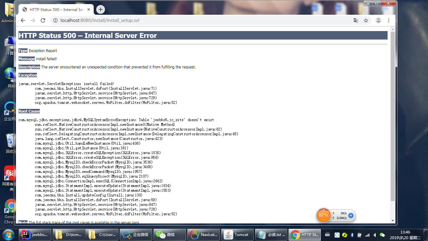 按照你们所提供的txt文档在本地tomcat上安装部署安装包,系统参数设置后,提交报500,表jc_site,不存在,你们所提供的创建这张表的SQL好像有问题。