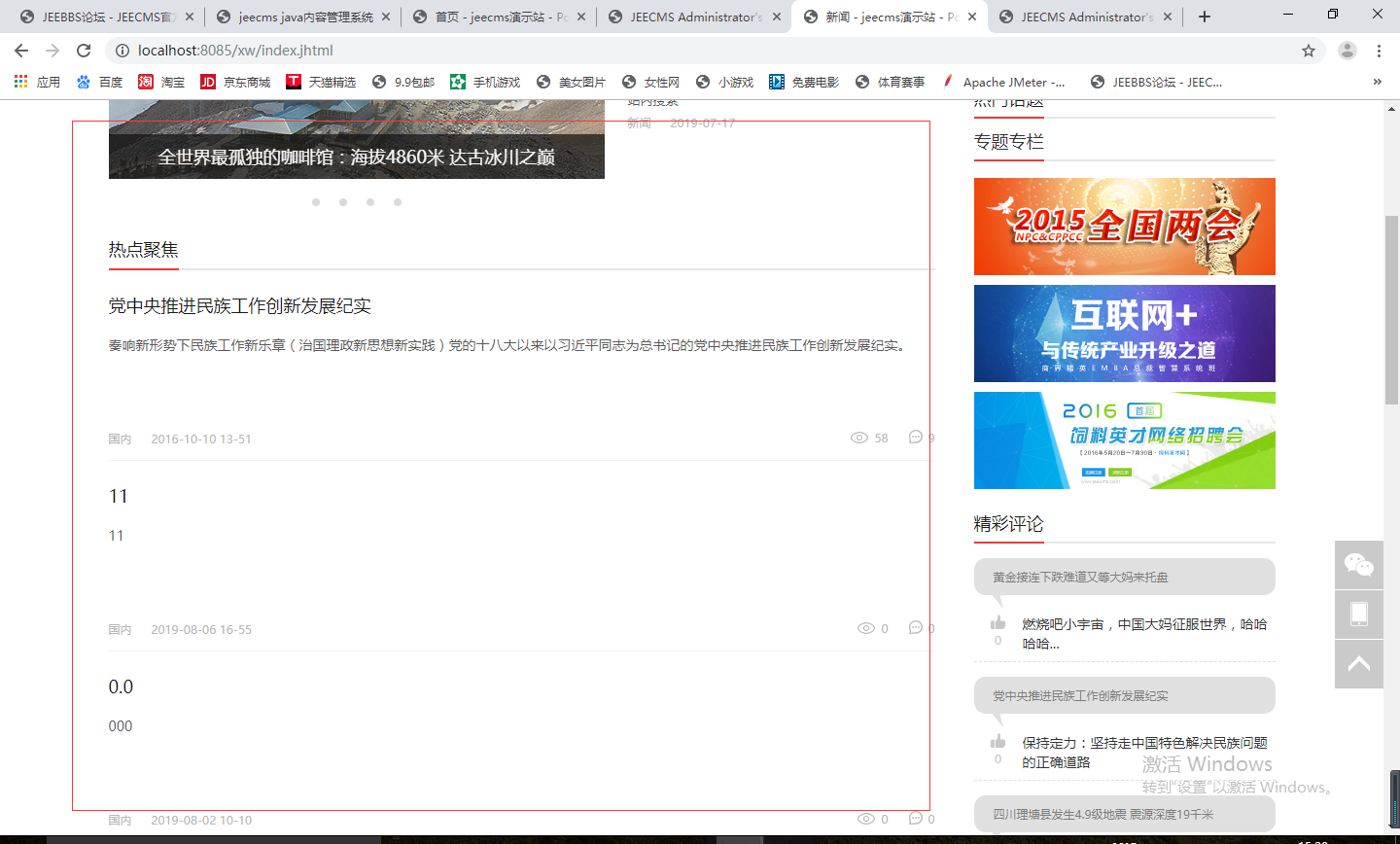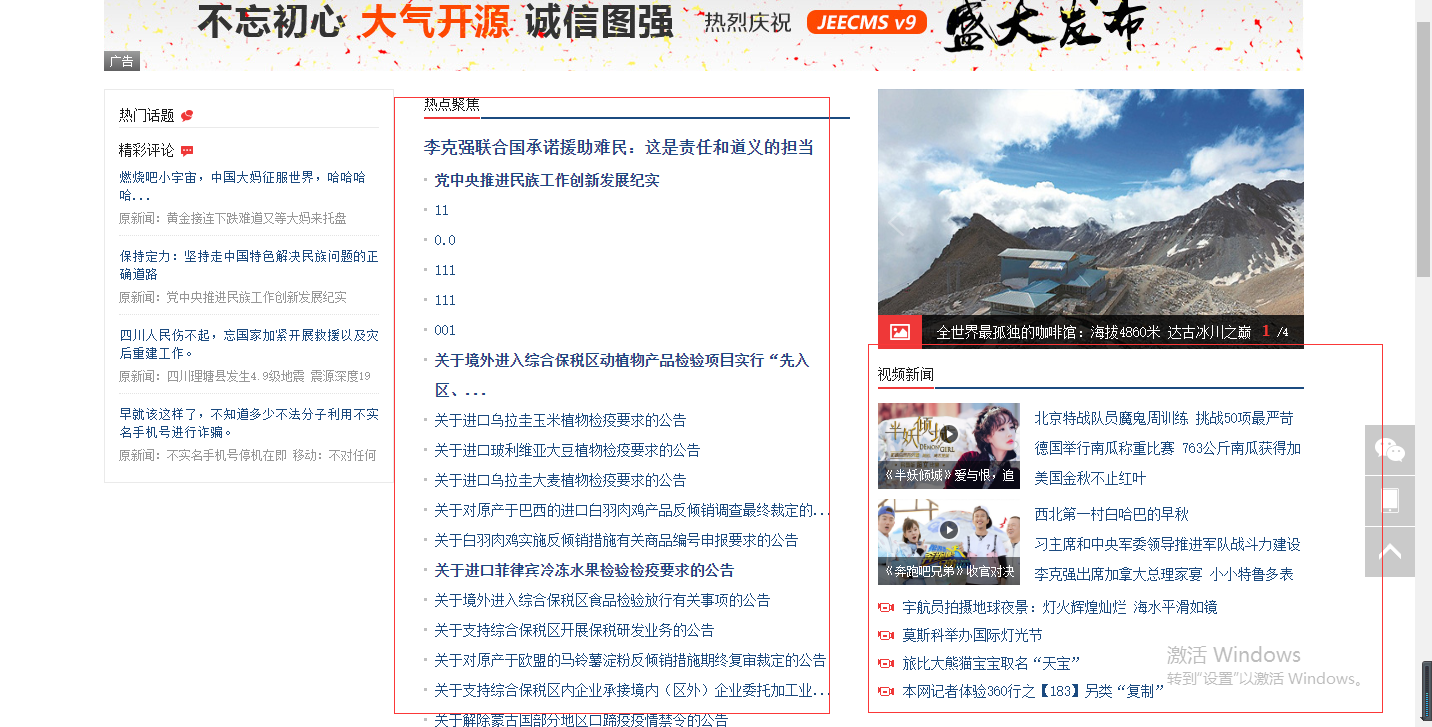 您看下我这里框起来的板块 您可以制作这样的板块在板块后面加一个更多的按钮 点击后跳转到对应的栏目页面内 栏目页面我等下也给您截个图