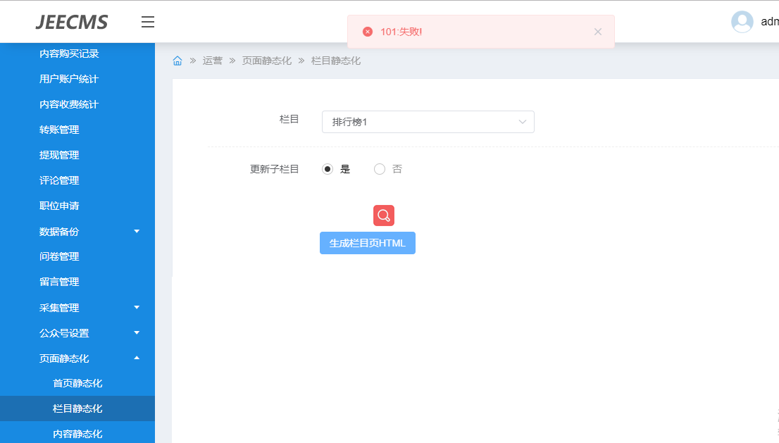 排行榜栏目静态化的时候失败怎么回事,也没说为什么失败