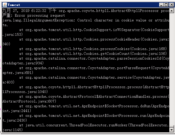 访问首页报服务器响应错误;后台报control character in cookie value or attribute这个怎么解决?
